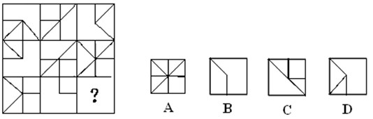 (解答:每行前兩個圖形疊加后,不同的部分就是第三個圖形。正確答案是D。)